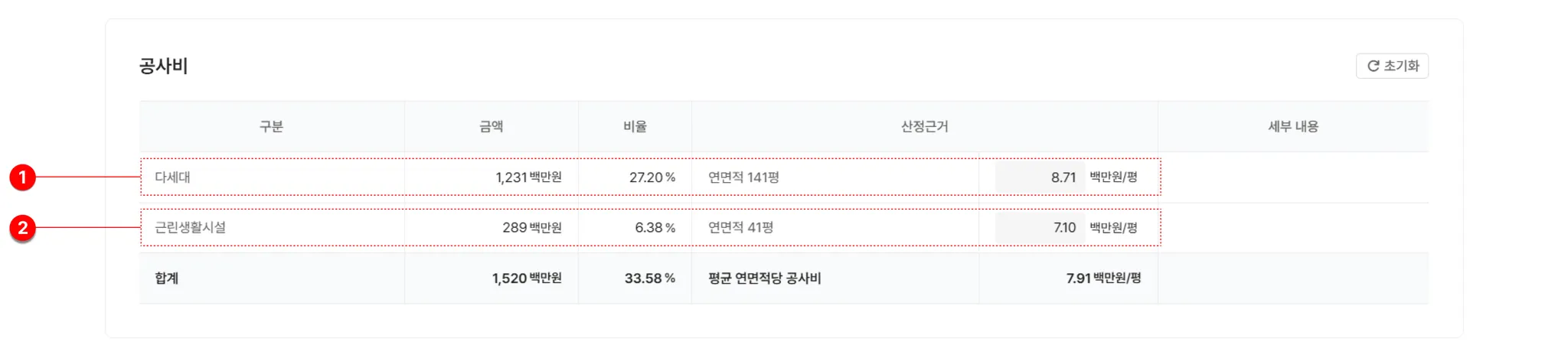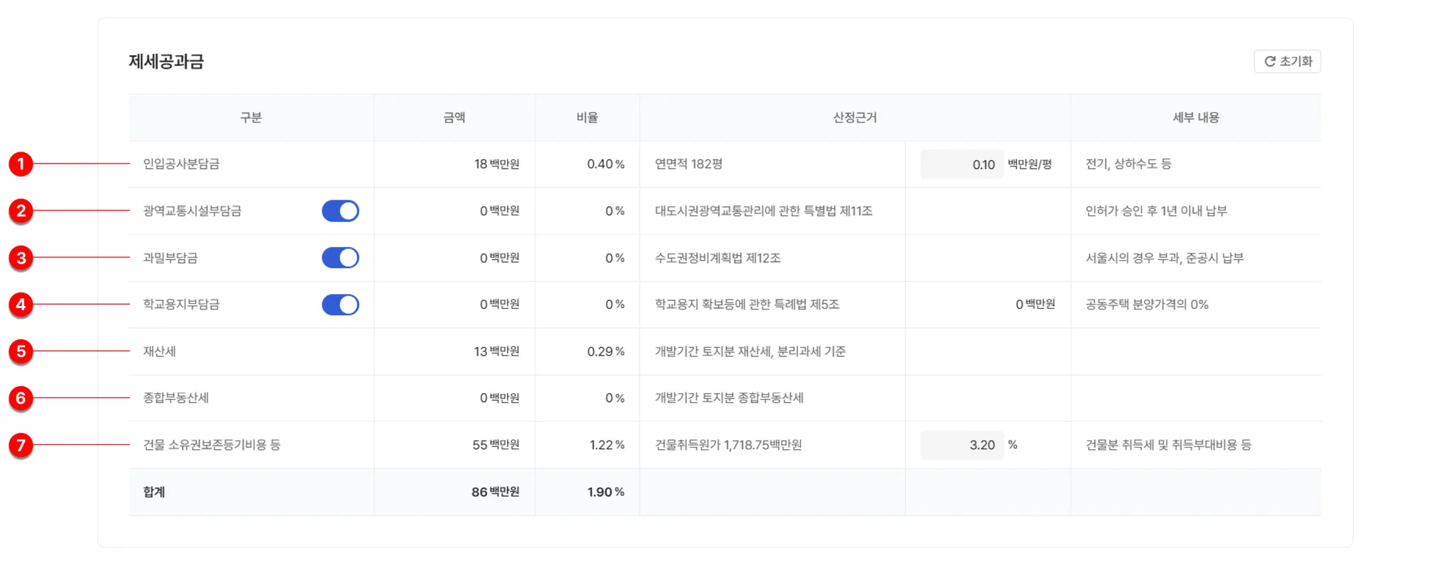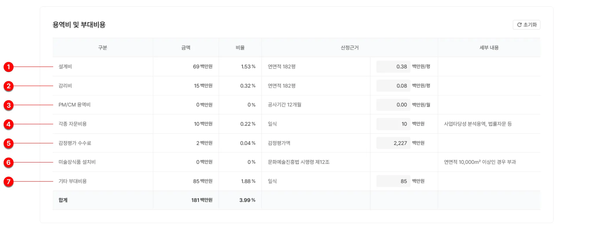 (공사비 + 토지비) X 1%(수정가능)으로 계산되어집니다