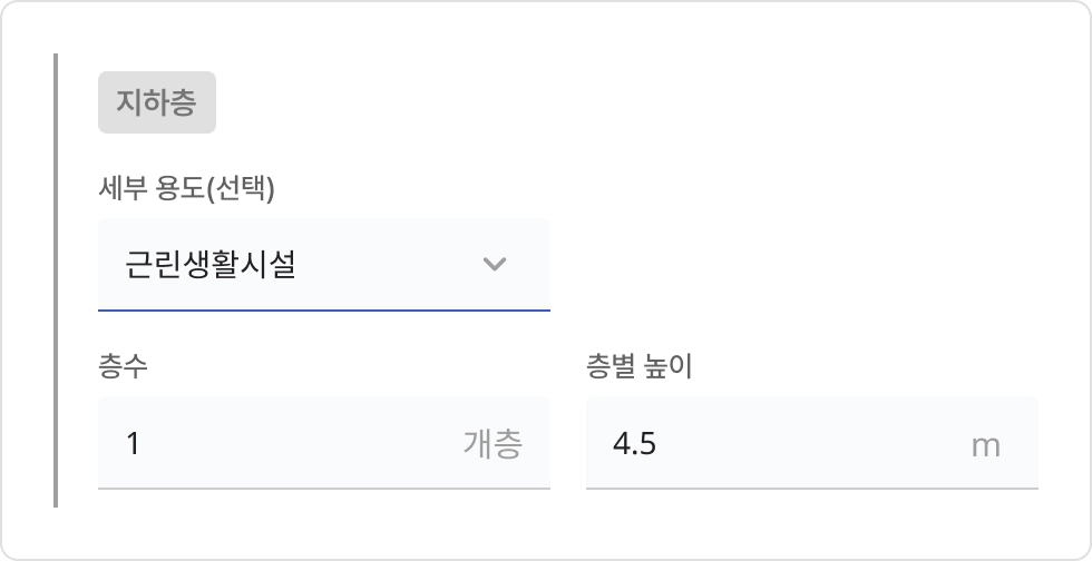 하층에 위치한 용도는 원하는 층수를 사용자가 직접 지정할 수 있습니다.
