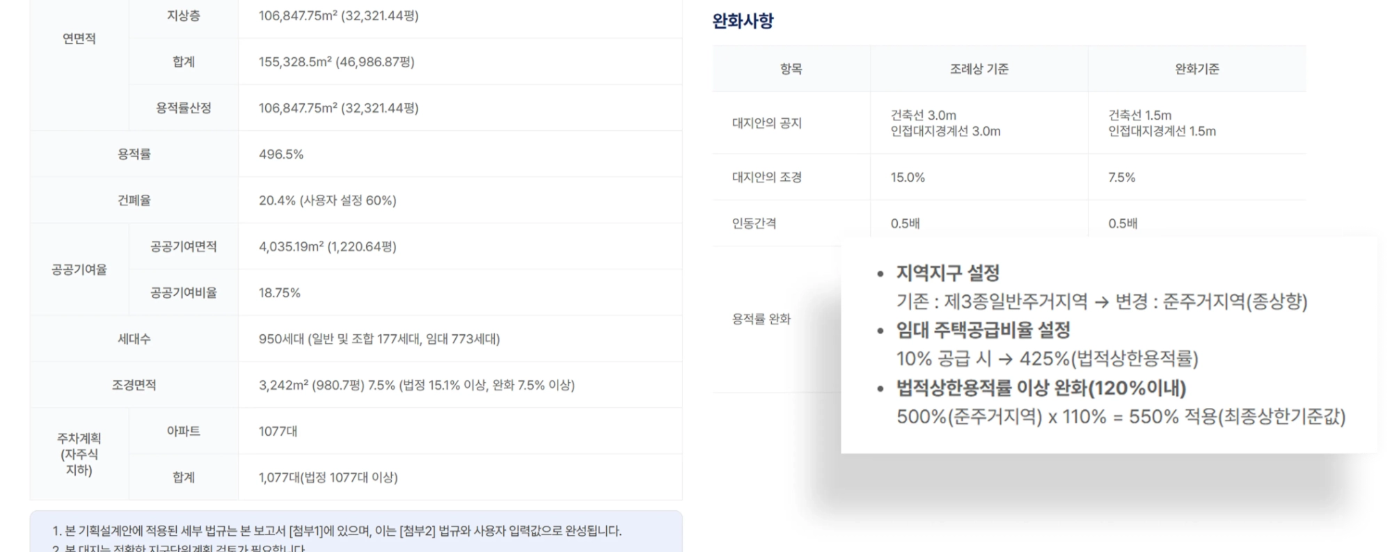 주민공동시설 용적률 제외 등 세부 항목 제공으로 정밀한 검토 지원