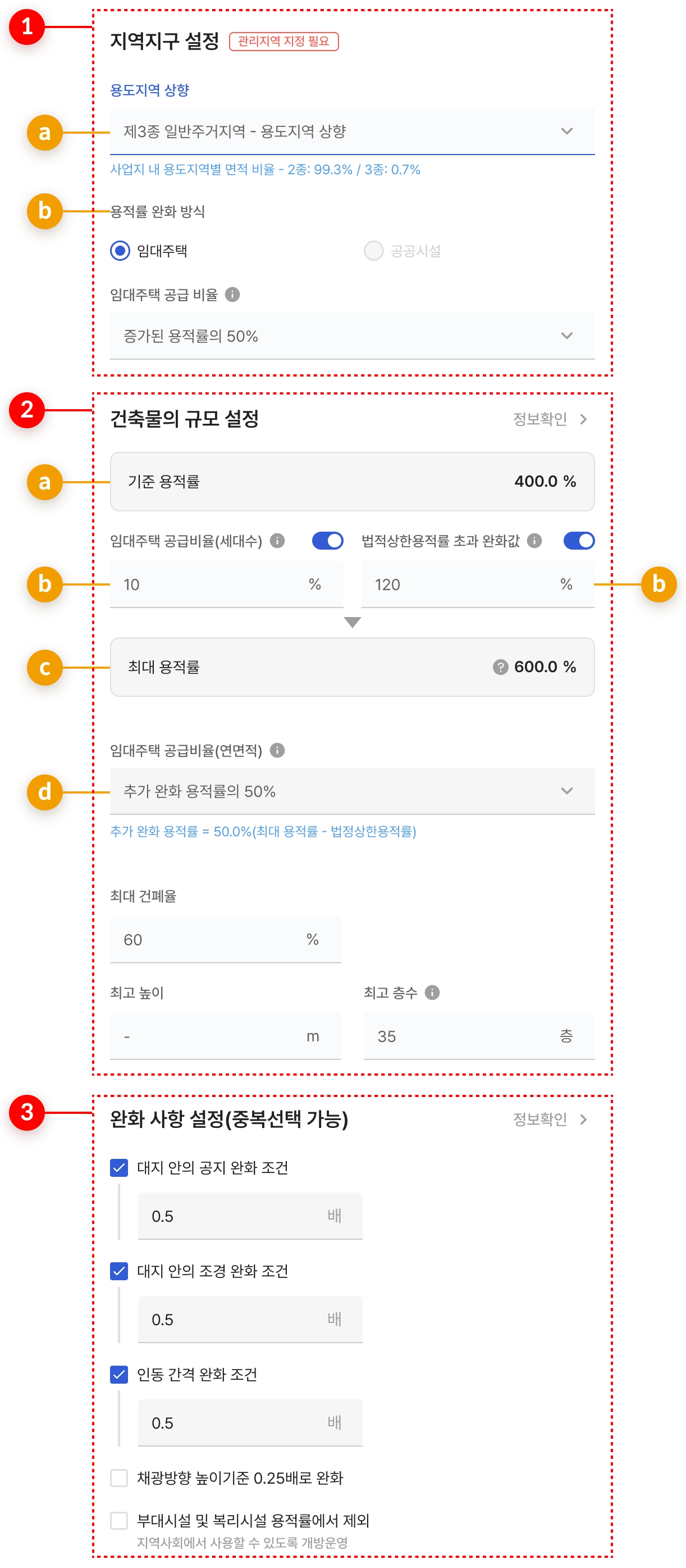용적률을 250%~400% 범위에서 사용자가 설정합니다.