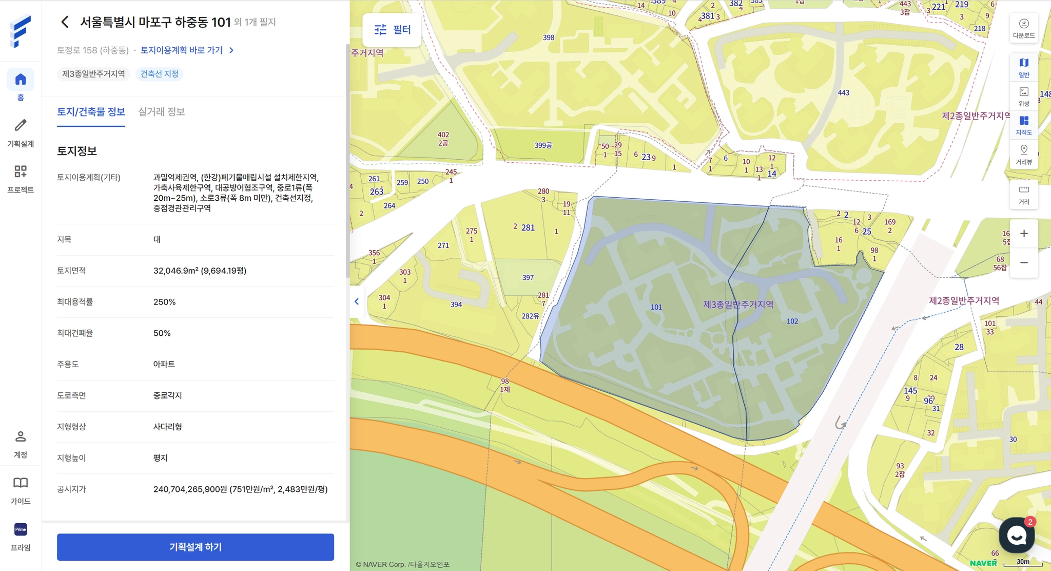 보다 상세한 건축 계획 정보는 하단의 [기획설계 리포트] 버튼을 통해 확인하실 수 있습니다.