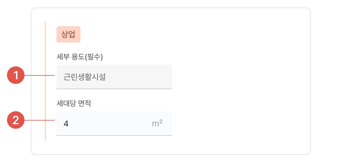 세대당 면적을 입력하여 근린생활시설 면적을 계획 할 수 있습니다.