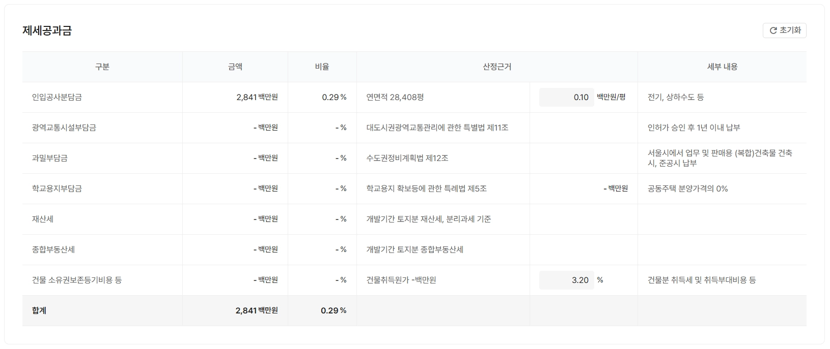(공사비 + 토지비) X 1%(수정가능)으로 계산되어집니다