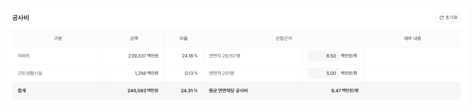 총 사업비: 개발사업에 필요한 총사업비를 설정하실 수 있습니다.