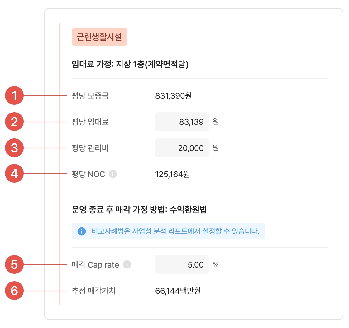 사업성 분석 리포트에서는 매각 가정 방법을 다르게 설정 가능