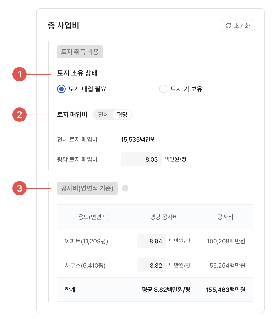 4. 총 사업비(B): 토지·공사·금융 등 개발에 소요되는 총비용