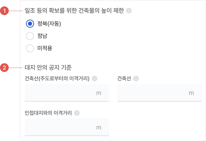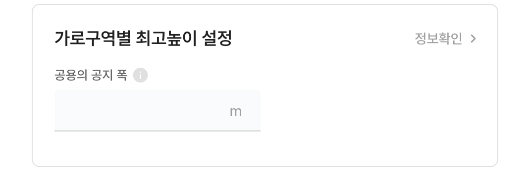 선택한 토지가 가로구역별 최고높이 제한지역에 속하는 경우, 해당 값을 직접 입력할 수 있습니다.
