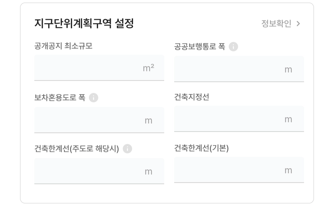 선택한 토지가 지구단위계획 구역에 포함된 경우, 관련 제한값을 직접 입력할 수 있습니다.