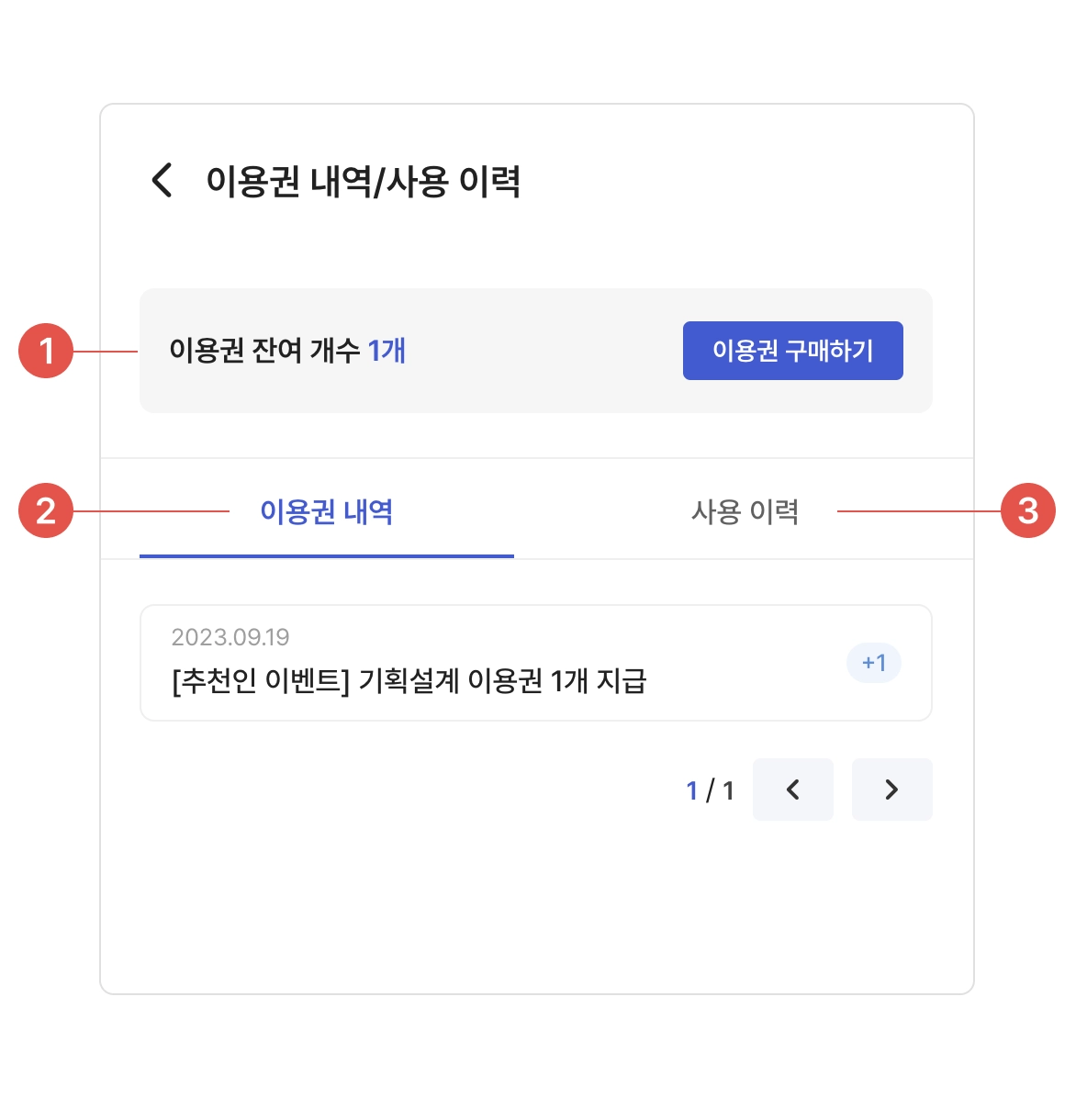 이용권을 구매하고, 이용권 내역 및 사용 이력을 확인할 수 있습니다.