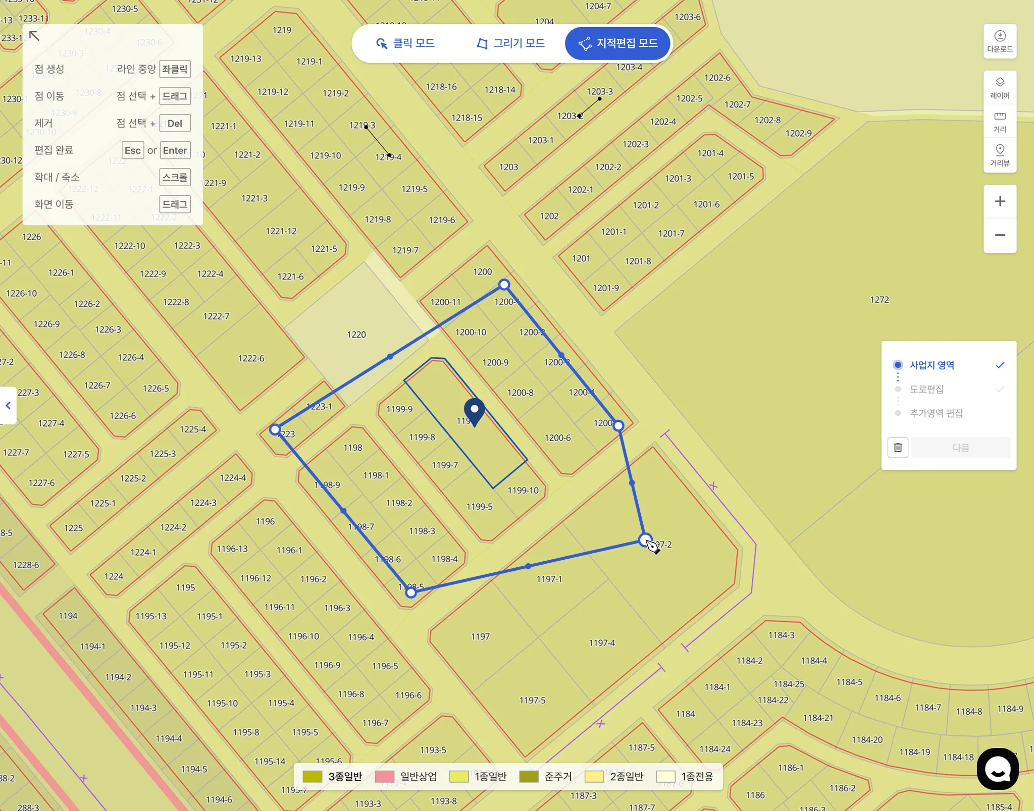 마우스로 클릭해 경계선을 그리면 사업구역이 자동 생성됩니다.