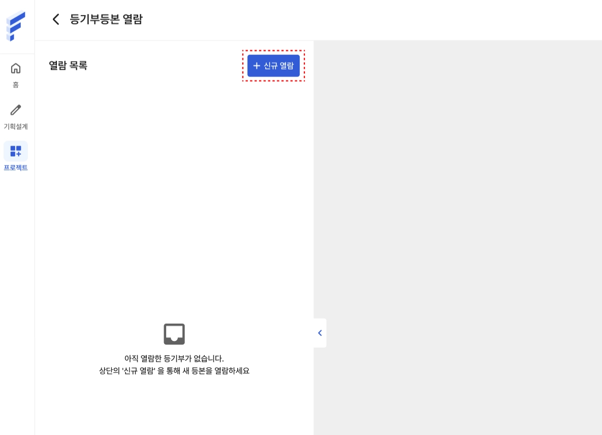 Step 01. 프로젝트 화면에서 등기부등본 열람 버튼을 확인하세요
