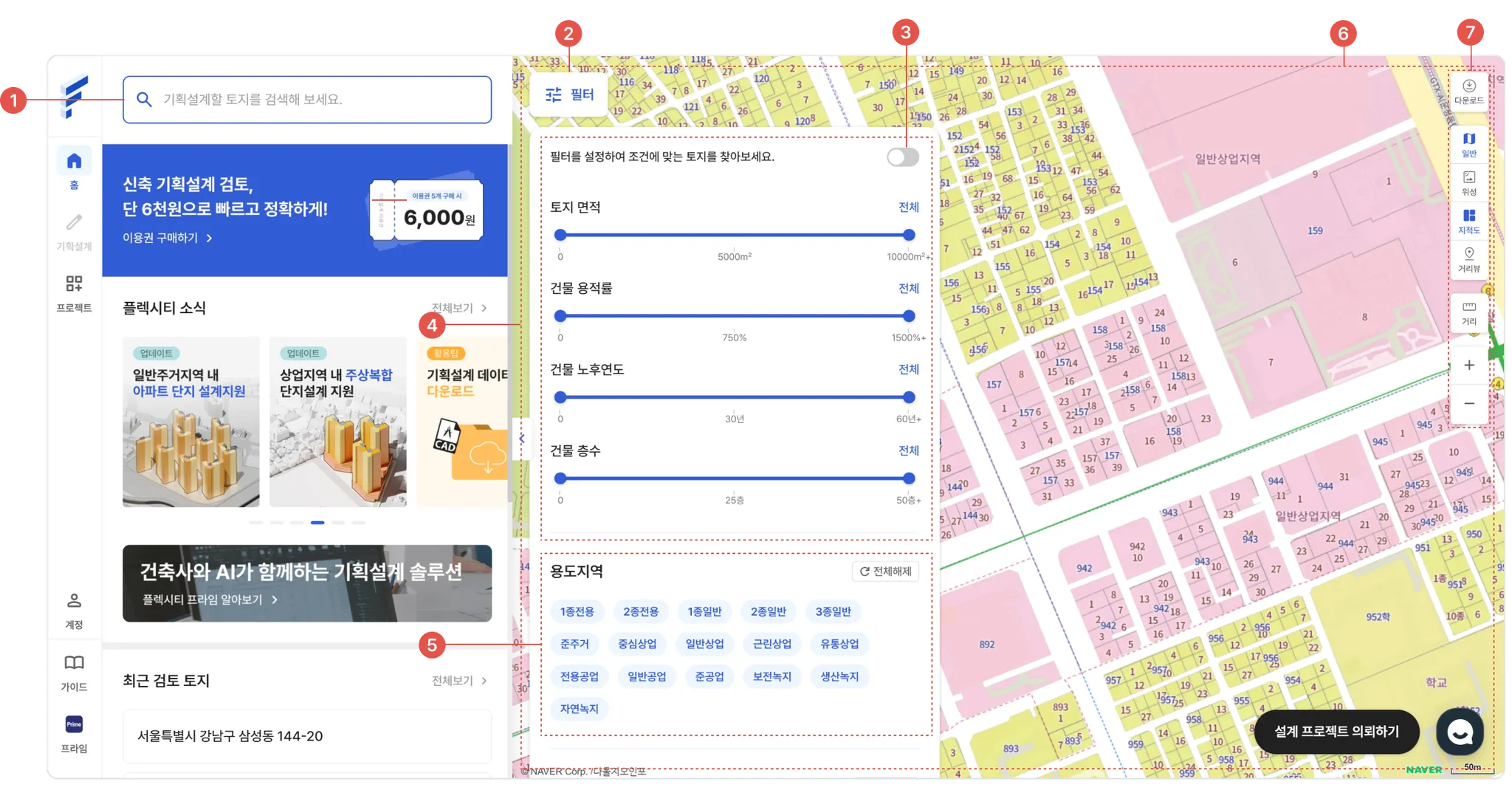 플렉시티에서 조건별 필터를 설정하고 토지 정보, 실거래가 정보를 확인해 높은 사업성이 예상되는 토지를 탐색할 수 있습니다.