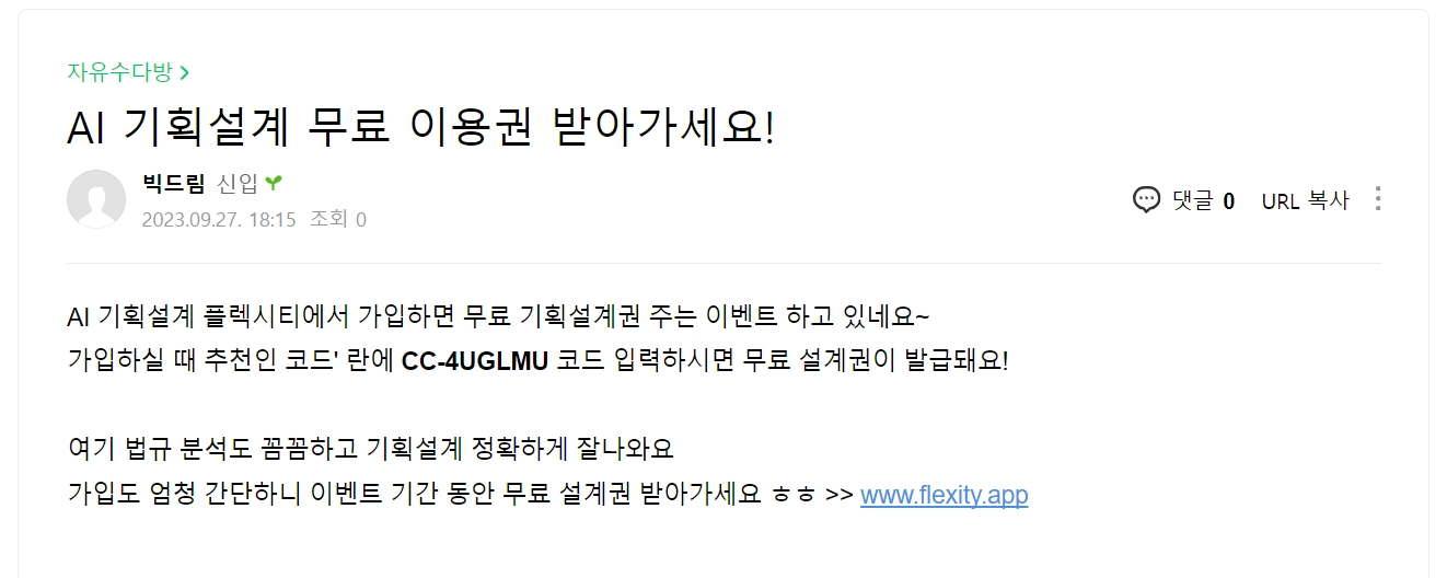 추천인 이벤트로 무료 기획설계권을 얻는 방법은 아주 간단합니다.