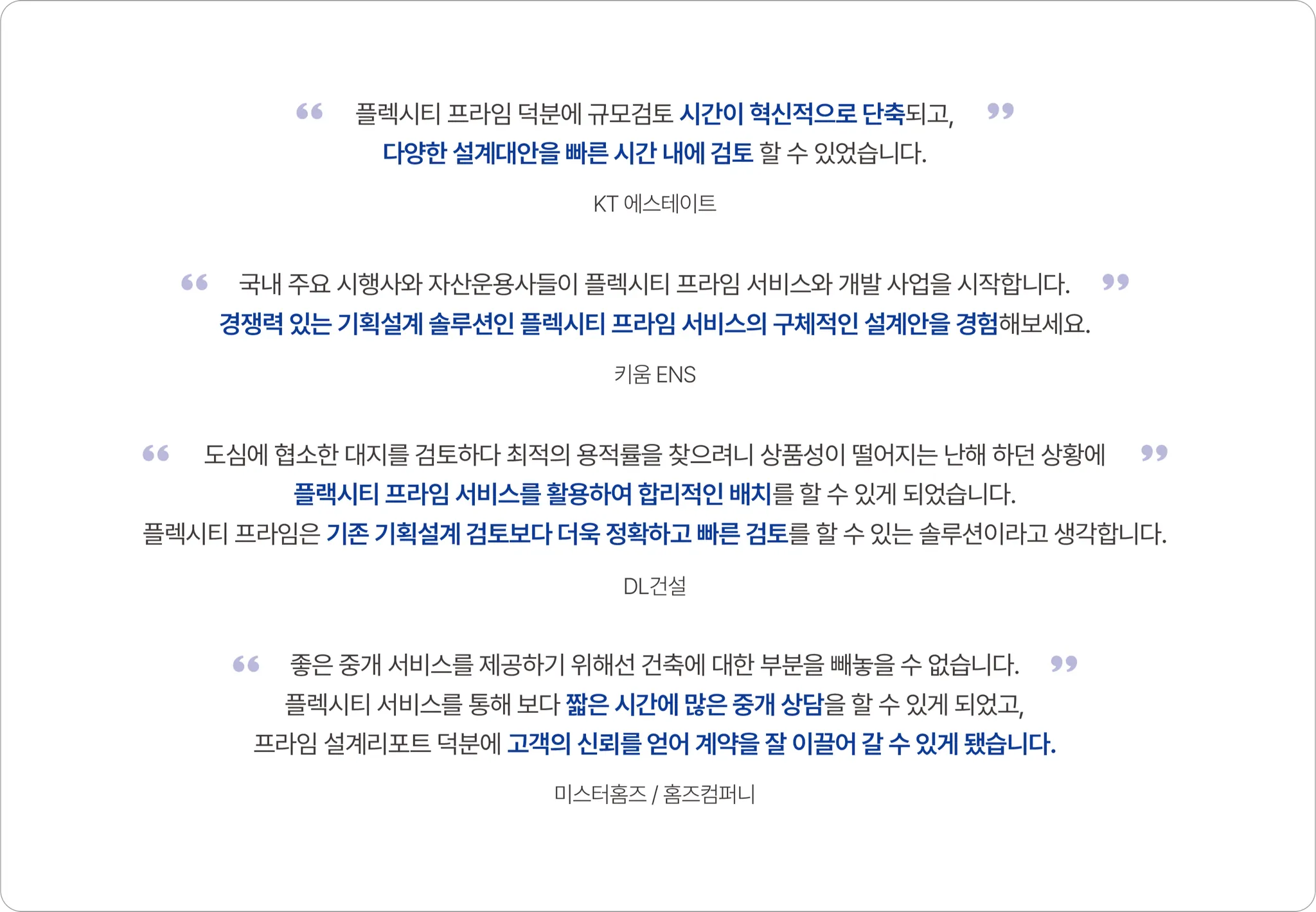 평균 경력 15년 이상의 전문 건축사들의 창의적인 아이디어와 AI기술력으로 높은 사업성의 건축 솔루션은 플렉시티 프라임이 유일합니다.
